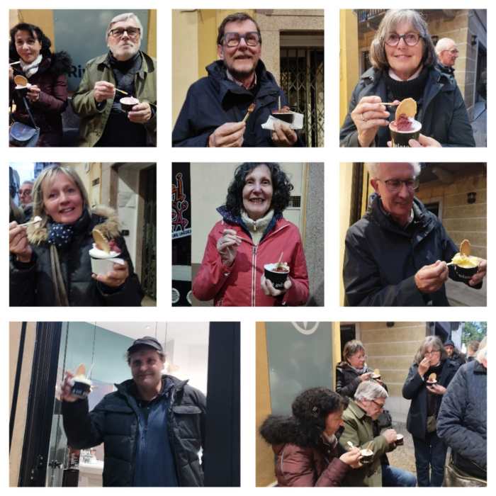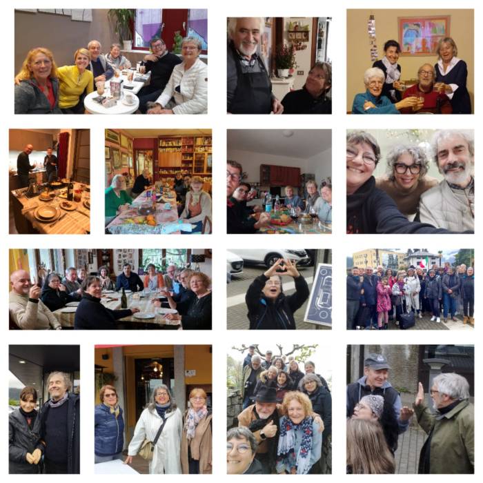 Puis l’instant tant attendu est arrivé : la rencontre Italie/France, les familles d’accueil sont venues chercher leurs invités. L’hébergement se faisait par un, deux ou quatre français par maison. Moment hors du temps que cet instant où les personnes sortaient de leur voiture en annonçant les prénoms de leur hôtes. Mais ce petit moment de flottement n’a pas duré longtemps, très rapidement les « glaces se sont brisées » et la communication a été assez rapidement très fluide. Certaines familles ont « ravi » leur français et ces derniers sont restés loin du groupe pendant le séjour à Omegna. D’autres se sont regroupées pour des instants de convivialité lors des repas ou des visites. Selon les familles, des visites ont été organisées autour du lac d’Orta, à Orta, à Omegna, dans les fabriques emblématiques de la ville, malheureusement le tout sous une pluie continue et un froid intense !