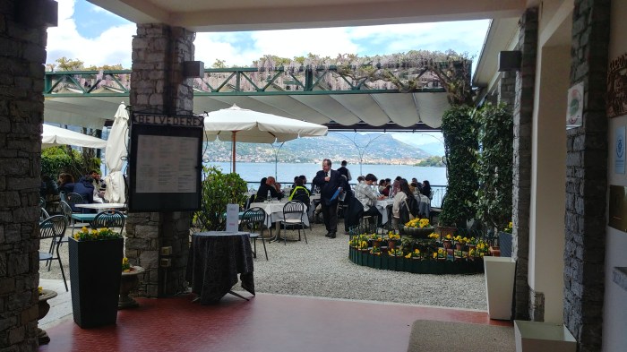 Puis l’Isola dei Pescatori pour déjeuner. Le 25 avril étant un jour férié en Italie, l’affluence était intense et le groupe a dû s’éclater afin de pouvoir trouver ici ou là de quoi se restaurer. Pour certains ce fût mission impossible et ils durent faire l’impasse sur le repas !!!!!!